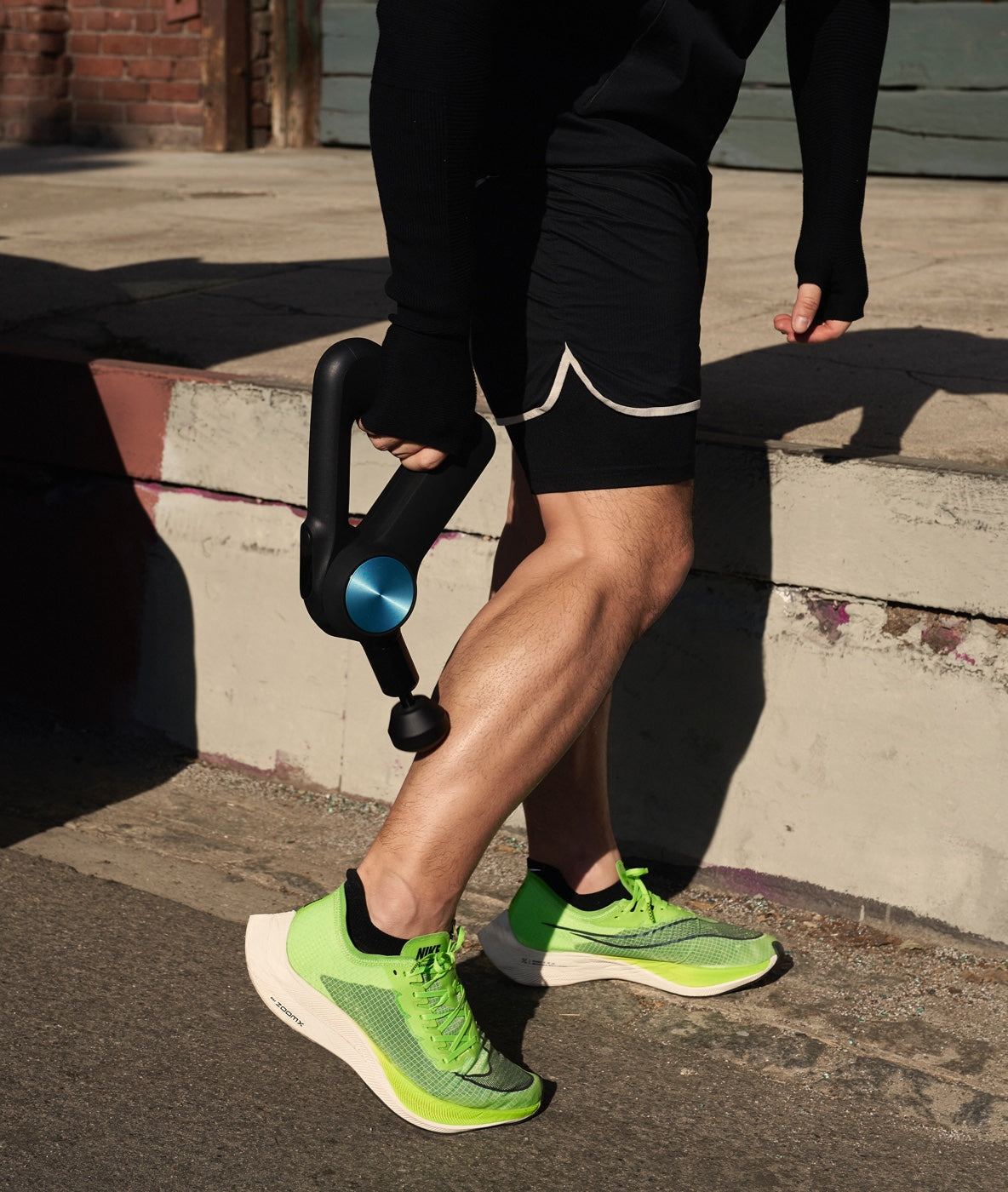 PROの人間工学に基づいた米国特許のマルチグリップ「Theragun Triangle(セラガン トライアングル)」とアジャスタブル アームによって、手や腕に負担をかけることなく、手の届きにくい部位も適切な角度で簡単にケアできます。 ランナーがよく経験する股関節屈筋のかたさをほぐしたい場合、THERAGUN PROのアームを完全に伸ばすと、人間工学に基づいたハンドルで握れて、深層へまっすぐあてることができます。 すべてはランナーのニーズを考慮してデザインされています。