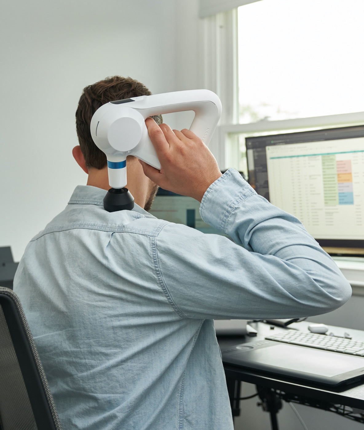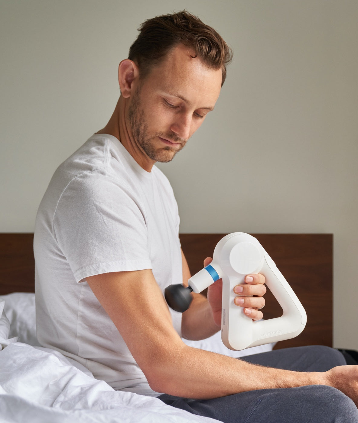 朝一番に体を動かすことは、朝の一杯のコーヒーと同じくらい大切です。TherabodyアプリはBluetooth®️ を介してTHERAGUN Elite(セラガン エリート)などと接続し、予め設定されているパーカッシブ セラピーのモーニング・ルーティンを提供します。 このアプリのモーニング・ルーティンは、理学療法士、トレーナー、ウェルネス専門家の教育チームによって作成されています。 日々の活動や進化するニーズに合わせてカスタマイズできる数あるルーティンのうちの1つに過ぎません。THERAGUN Eliteは最大3つのルーティンをデバイスに保存し、OLEDスクリーンからアクセスできます。OLEDスクリーンで、ルーティンのスピードや力のかけ具合をモニターすることもできます。