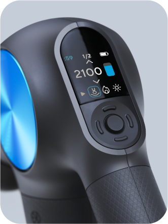 ディスプレイ画面。プロプラスのディスプレイで、ステップバイステップの視覚的ガイドに従って、5つのパーカッシブスピードを簡単にナビゲート。