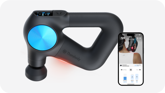 ディスプレイ搭載で簡単操作で画面から5段階のスピード調整。デバイス上で心拍数を測定できる「生体認証センサー」と赤色LEDライトが内蔵。Bluetooth接続で使える専用アプリ「Therabody (iOS/Android)」との連携で、ボディケアからリカバリー、ヘルスケア管理がより一層強化されました。