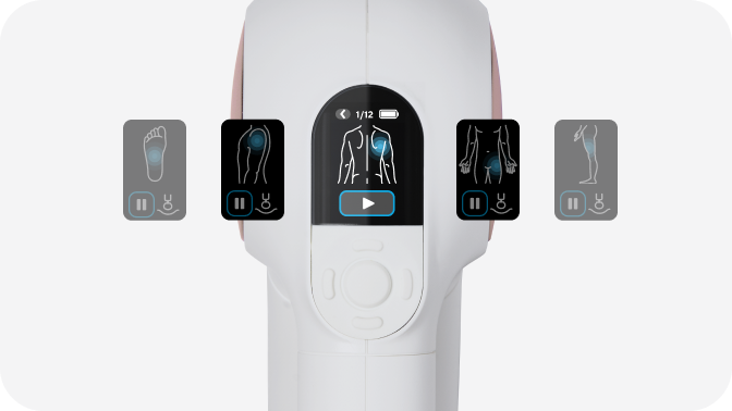 市販の一般的なデバイスに比べ、パワフルな振幅12mmを維持しながら、軽量なボディ(725g)と最大120分のバッテリーライフを実現。ディスプレイ搭載でさらに便利に。